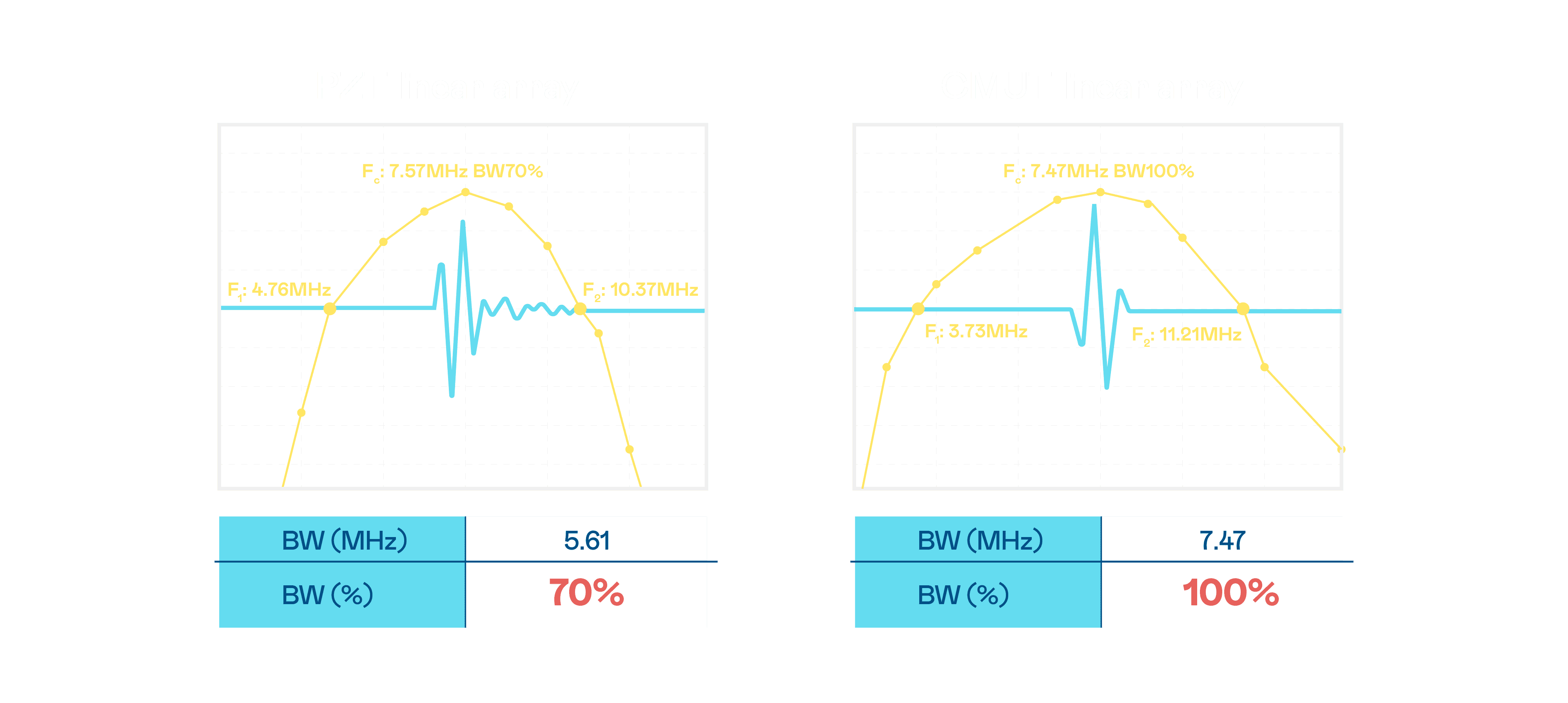 超音波影像的解析度高低,,首先取决于探头能发出的讯号频宽。。。。口袋牛店 CMUT 可提供高清晰的超音波讯号,,提供高频宽、、高灵敏度、、影像纹理细节更高的超音波影像,,,,协助医护人员缩短影像判读时间及利用精准的医疗影像进行诊断。。