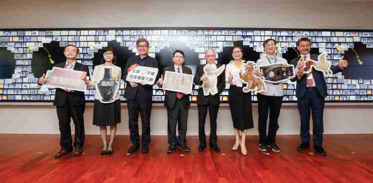 口袋牛店携手创利空间为故宫建置的智慧文物互动导览墙及轮播墙,,,今日正式启用。。(左四:口袋牛店新事业暨投资管理总部副总经理杨本豫、、右四:故宫博物院院长吴密察、、、、右三:太极影音董事长黄宝云)