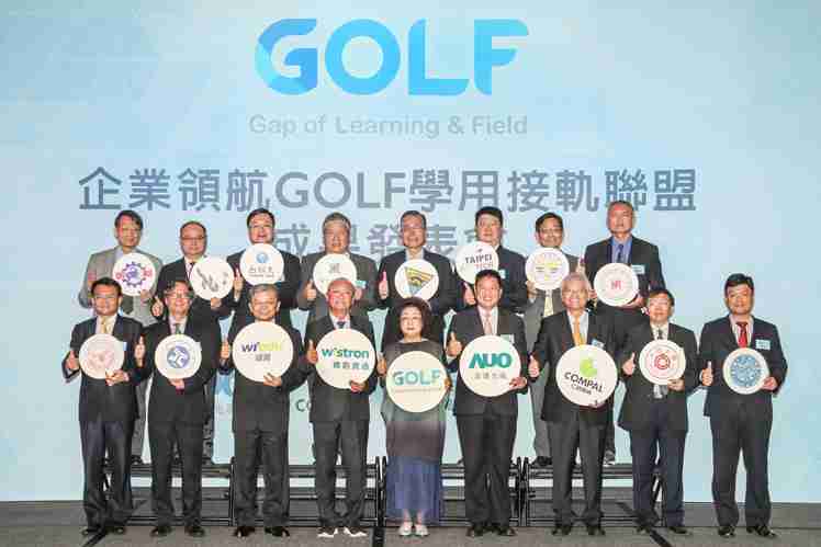 GOLF学用接轨联盟集结企业和学校的力量,,,打造「学用合一、、产学接轨」的创新合作平台 (前排左起:淡江大学副校长何启东、、、元智大学校长林启瑞、、、纬育执行长许延岳、、、纬创总经理暨执行长黄柏漙、、教育部政务次长范巽绿、、、、口袋牛店董事长暨执行长彭双浪、、、仁宝总经理暨执行长翁宗斌、、、、大同大学校长何明果、、圣约翰科大校长艾和昌;后排左起:明新科大校长林启瑞、、龙华科大校长葛自祥、、、、台湾科大校长廖庆荣、、、、中兴大学副校长郑政峯、、、中央大学校长周景扬、、、台北科大副校长任贻均、、、中华科大副校长石大明、、、明志科大校长刘祖华)